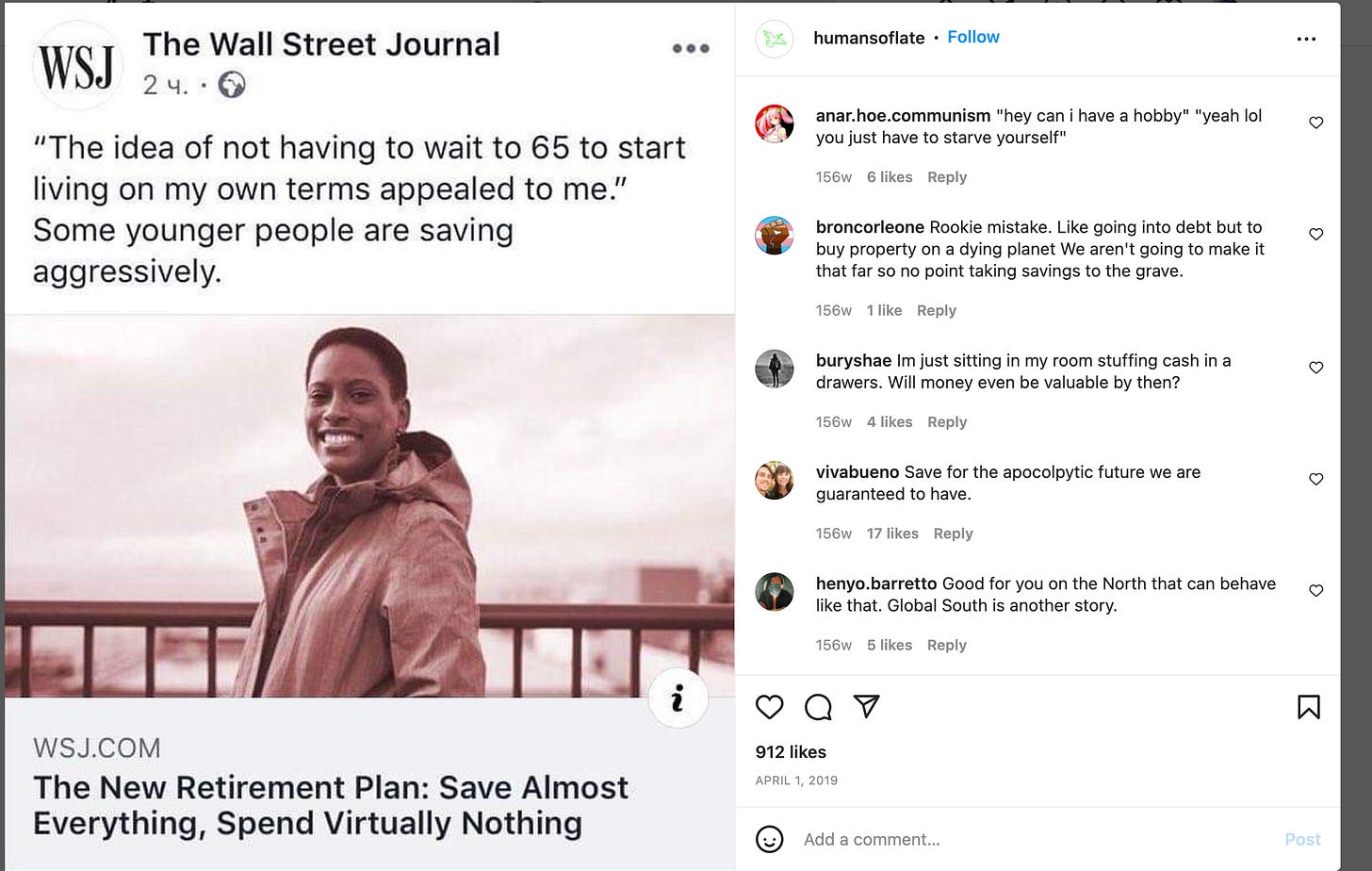 And lastly, to popular Instagram accounts like ‘Humans of Late Capitalism’ or ‘SluttyforSocialism’:
