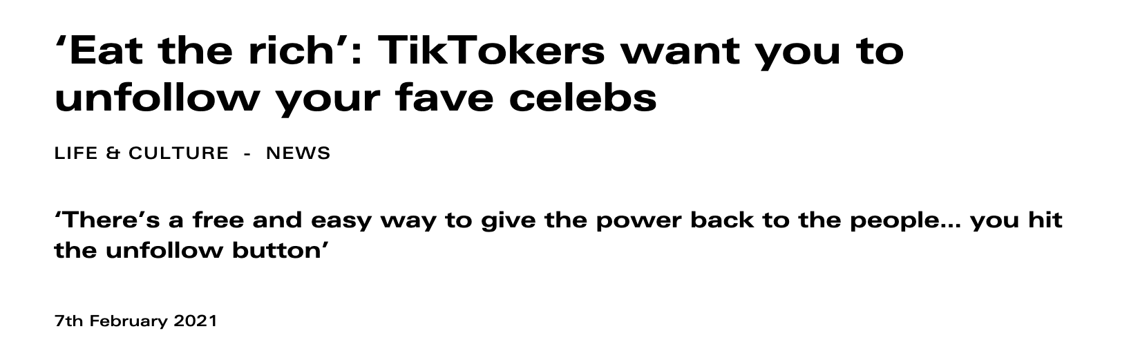 There is one version of this trend that is all about unfollowing social media accounts of celebrities in the sense of let’s reduce their follower numbers and therefore their power and influence.