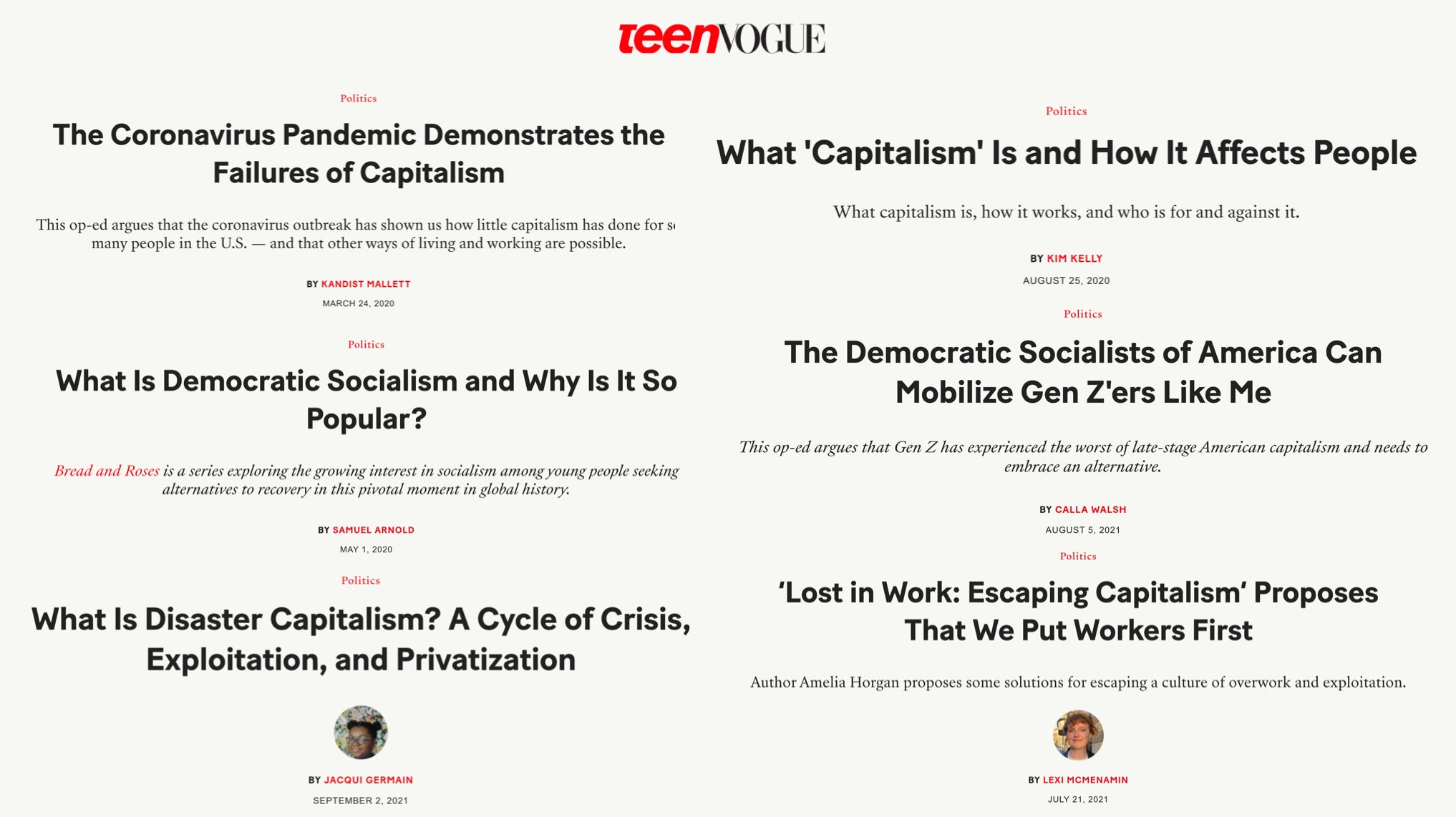 Yep, the same magazine that organizes the above mentioned Met Gala is super anti-capitalist in its teenager focused publication.