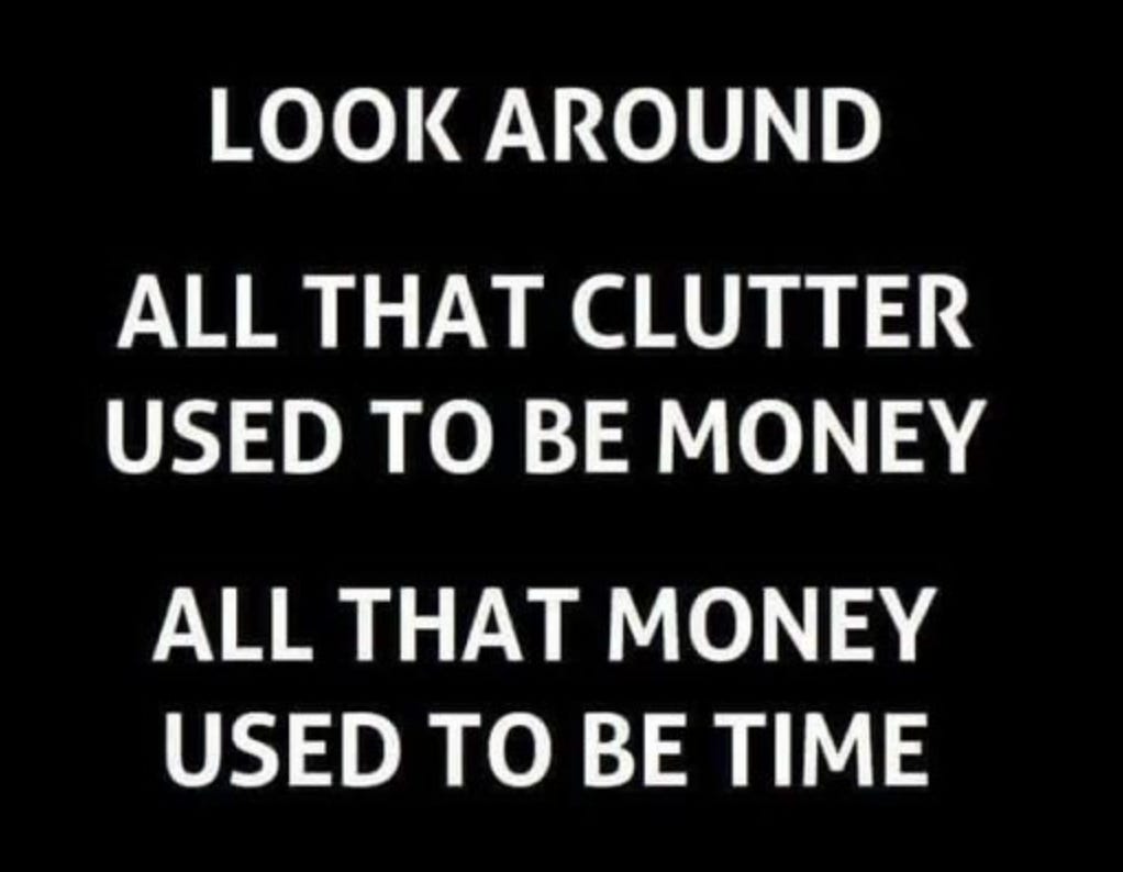 "All that money used to be time" This conuming is not only destroying our world. Furthermore it holds us back from enjoying life, the only thing people thing the consuming is all about. So let us stop this bullsh*t and stop meassuring only the economy growth!