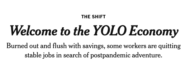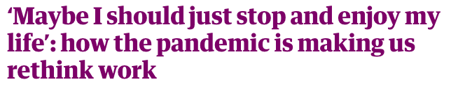 The Pandemic (of course!), an unprecedented, worldwide crisis that allowed people to take a step back and rethink what they want to do in their life